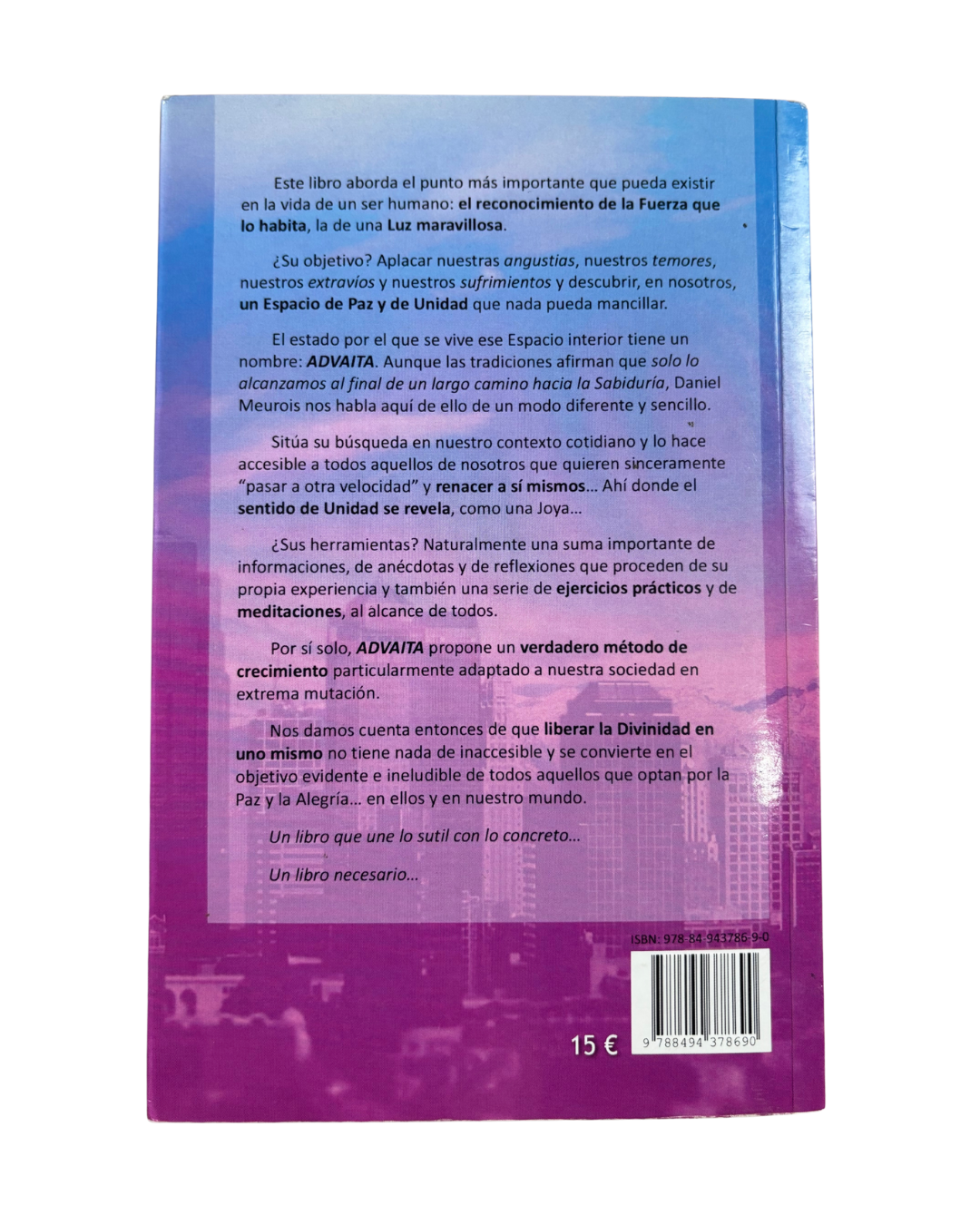 Advaita es un relato espiritual en el que Daniel Meurois explora el camino hacia la unidad del ser y la comprensión profunda de la conciencia. A través de experiencias místicas, enseñanzas interiores y reflexiones sobre la naturaleza del alma, el autor guía al lector hacia la idea central del advaita: la no dualidad, la certeza de que todo está conectado y de que la separación es una ilusión. El libro combina narrativa, sabiduría ancestral y mensajes de transformación personal orientados a despertar la conciencia y recordar nuestra verdadera esencia.