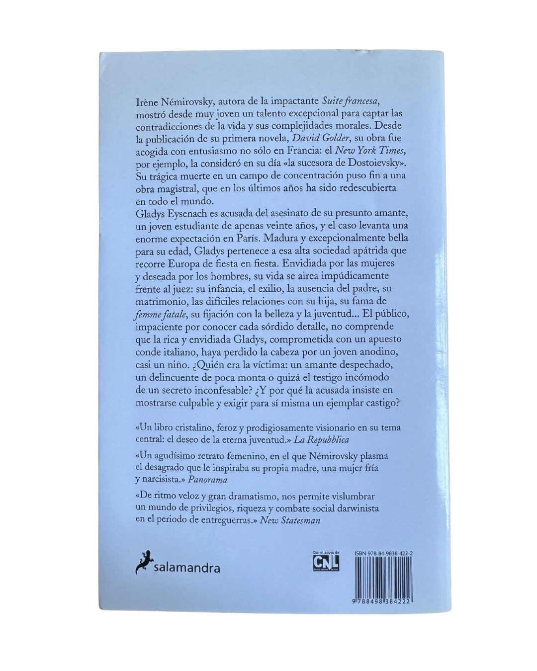 Jezabel, de Iréne Némirovsky, narra el polémico juicio de Gladys Eysenach, una mujer de alta sociedad en París acusada del asesinato de su joven amante. A través del proceso, se revelan sus complejos vínculos familiares, su exilio, y su lucha por mantener una imagen de belleza y juventud en un entorno marcado por la envidia y el deseo. Esta novela explora con profundidad psicológica los contrastes entre la apariencia y la realidad en la elite europea, ofreciendo un análisis incisivo de la fragilidad humana tras el brillo social.